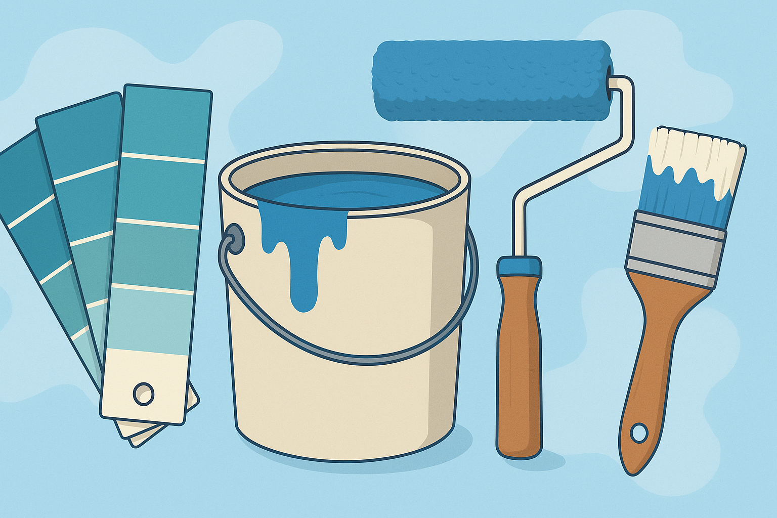 - One coat of primer and two coats of paint for: